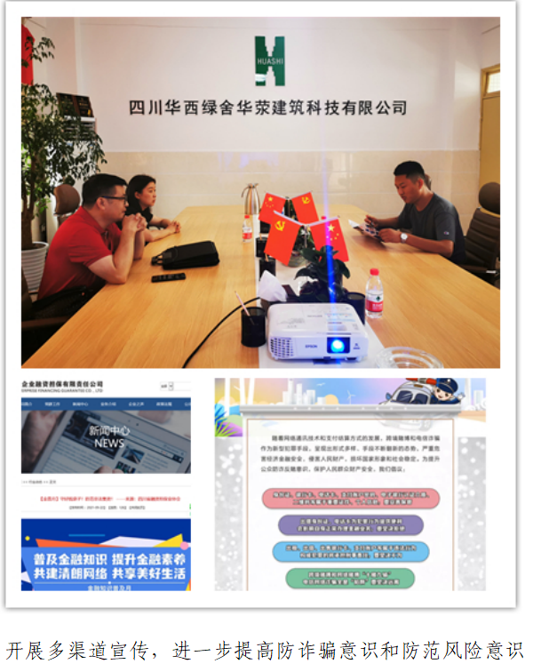 9月以來,市擔(dān)保公司結(jié)合實(shí)際情況,采取線上線下的方式,一方面通過公司的門戶網(wǎng)站、微信公眾號,轉(zhuǎn)發(fā)金融知識普及月的相關(guān)知識,提升防范化解金融風(fēng)險的意識,積極營造清朗金融網(wǎng)絡(luò)環(huán)境;另一方面通過加強(qiáng)盡職調(diào)查、財(cái)務(wù)分析、職業(yè)道德、業(yè)務(wù)技能、思想品德等方面的集中培訓(xùn),強(qiáng)化職工職業(yè)素養(yǎng)和業(yè)務(wù)水平,為廣大中小企業(yè)和“三農(nóng)”提供更加優(yōu)質(zhì)便捷的金融服務(wù),切實(shí)緩解“融資難、融資貴”等問題。同時,公司客戶經(jīng)理在外出辦理業(yè)務(wù)時,也積極向廣大客戶進(jìn)行宣傳,進(jìn)一步提升中小企業(yè)業(yè)主和農(nóng)戶的金融素養(yǎng),提高防詐騙意識和防范風(fēng)險意識,切實(shí)維護(hù)了金融消費(fèi)者的合法權(quán)益。