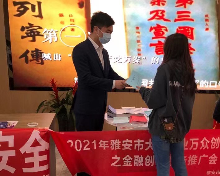 2021年10月15日至19日,雅安開(kāi)展2021年大眾創(chuàng)業(yè)萬(wàn)眾創(chuàng)新活動(dòng)周活動(dòng),主題是“高質(zhì)量創(chuàng)新創(chuàng)造、高水平創(chuàng)業(yè)就業(yè)”。期間,市擔(dān)保公司充分發(fā)揮融資擔(dān)保作用,為廣大創(chuàng)業(yè)者提供個(gè)性化的服務(wù),積極營(yíng)造大眾創(chuàng)業(yè)萬(wàn)眾創(chuàng)新的良好氛圍。