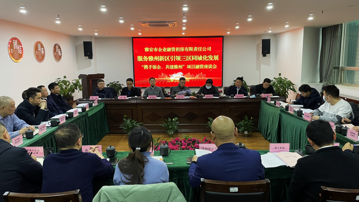 為深入貫徹落實中央、省、市相關會議精神,更好服務雅州新區(qū)引領三區(qū)同城化發(fā)展,助力雅安經(jīng)濟總量邁步跨入千億元臺階,1月25日,由雅安市財政局、市金融工作局指導,雅安市企業(yè)融資擔保有限責任公司(以下簡稱“雅安市擔保公司”)承辦的服務雅州新區(qū)引領三區(qū)同城化發(fā)展“攜手銀企、共建雅州”項目融資座談會召開,旨在充分發(fā)揮金融現(xiàn)代經(jīng)濟核心作用,為高水平建設雅州新區(qū),引領三區(qū)同城化發(fā)展貢獻金融力量。