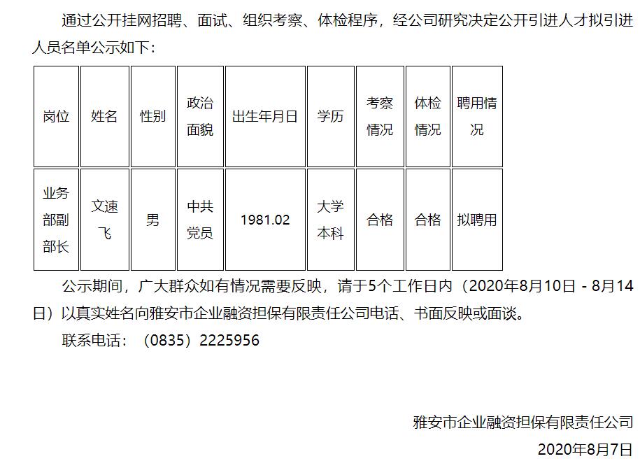 公開引進人才擬引進人員名單公示